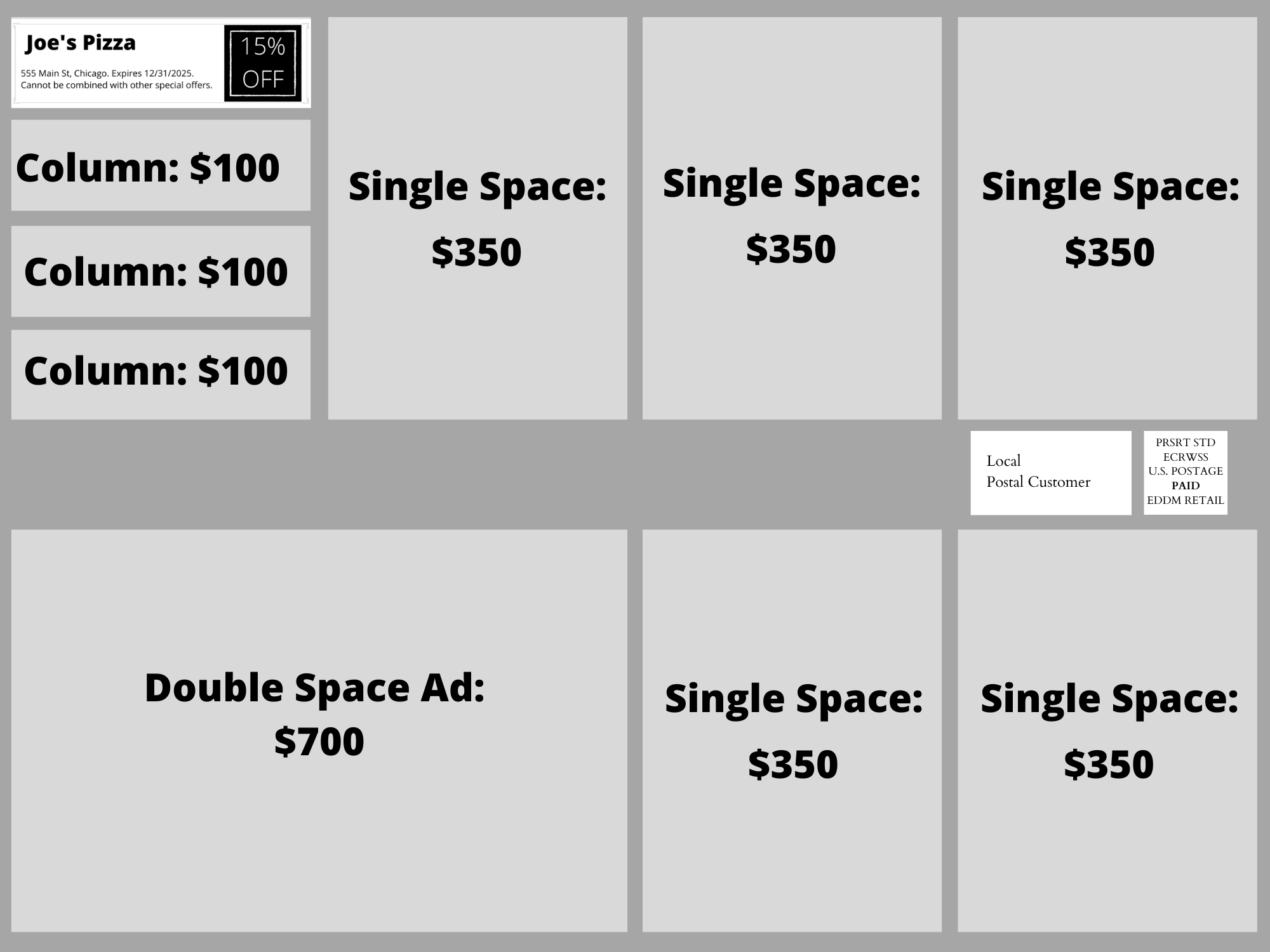 Single Space: $350.00